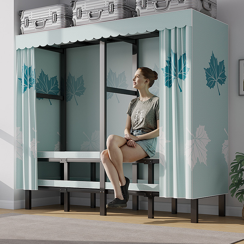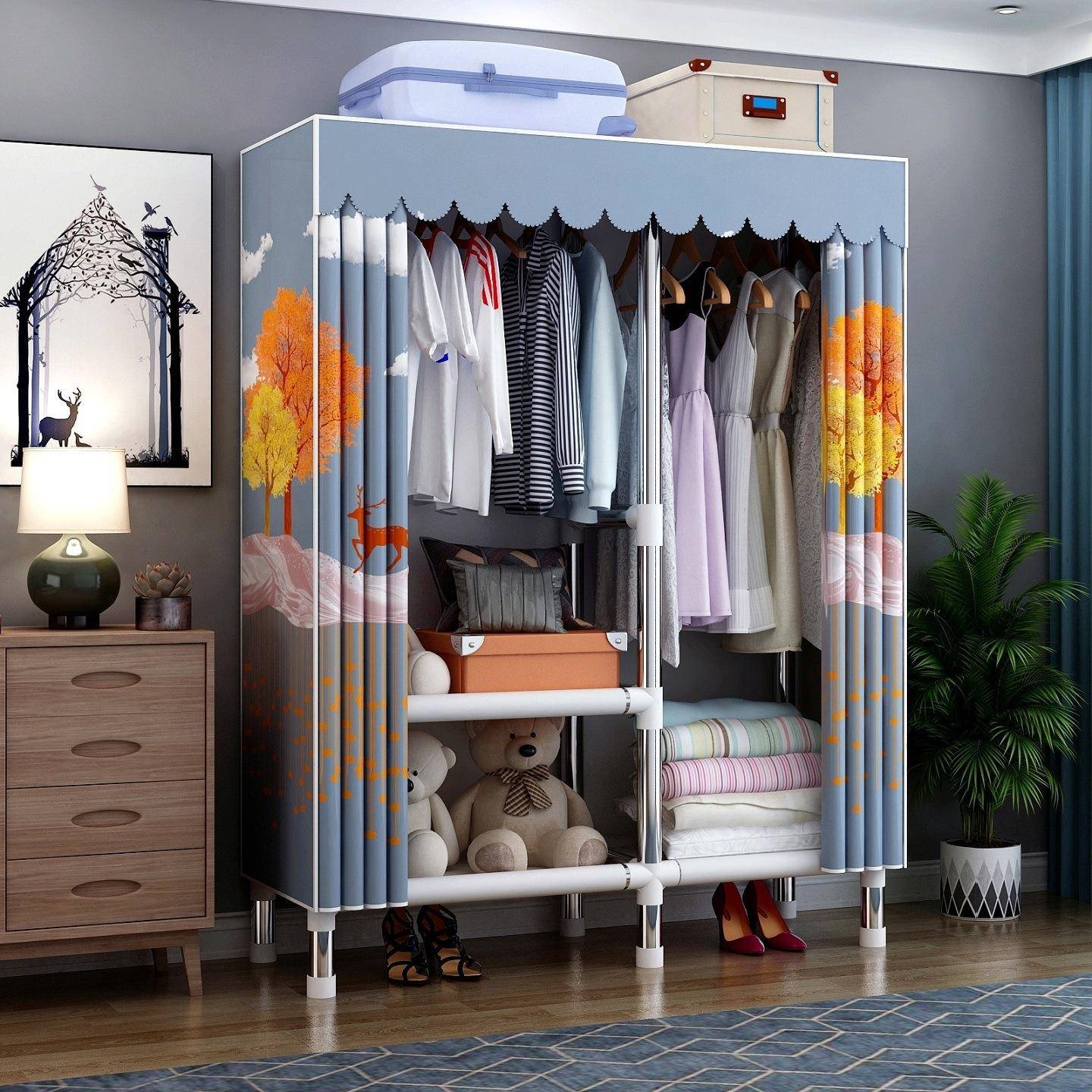 简易衣柜布衣柜加厚钢管简易组装耐用双单人衣橱出租房衣架挂衣柜