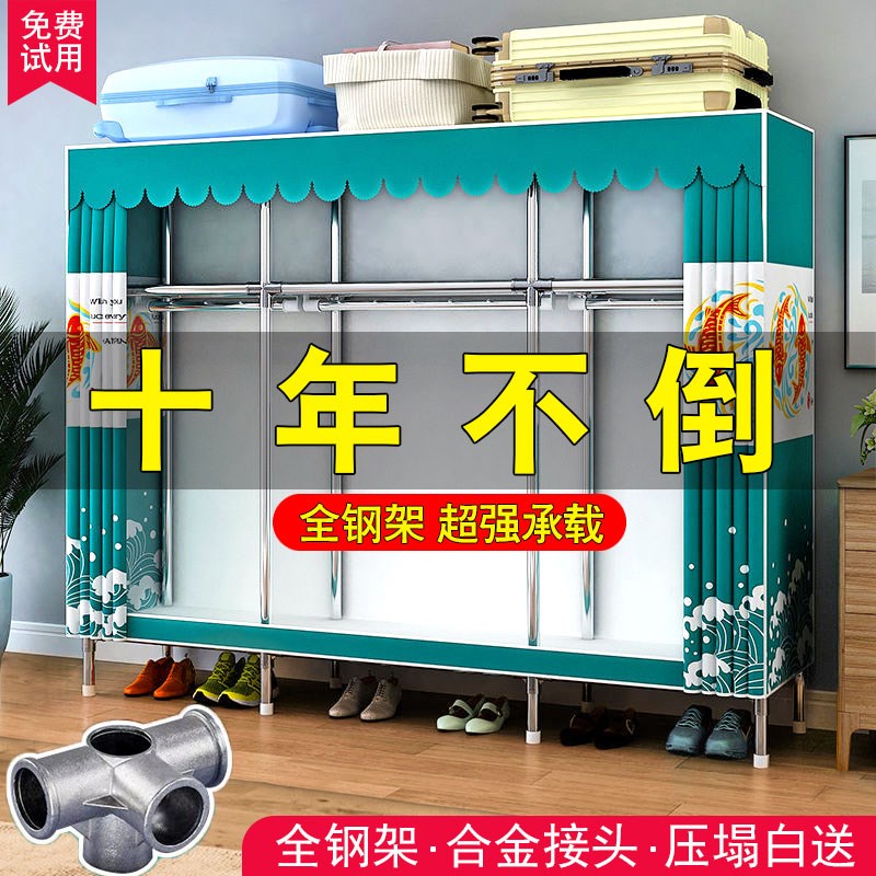 26mm简易衣柜布衣柜家用卧室全钢架出租房用钢管加粗加厚结实耐用