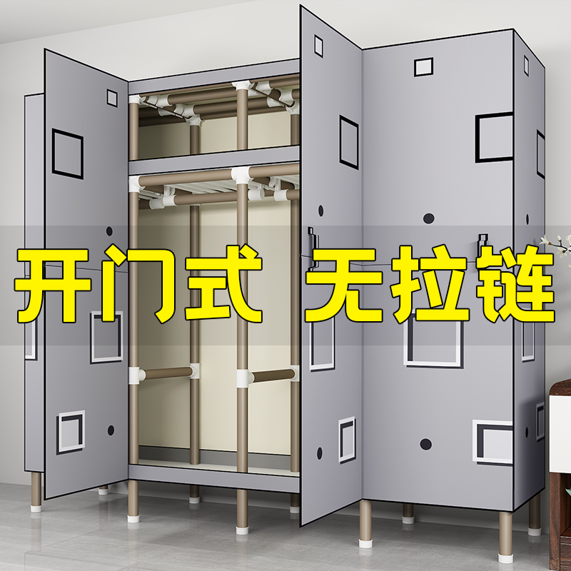 开门式衣柜布衣柜卧室家用出租房简易组装全钢架收纳衣橱耐用柜子