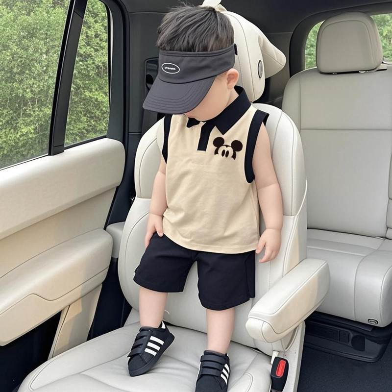 儿童无袖套装夏季新款卡通印花POLO领背心男女童宝宝薄款宽松短裤