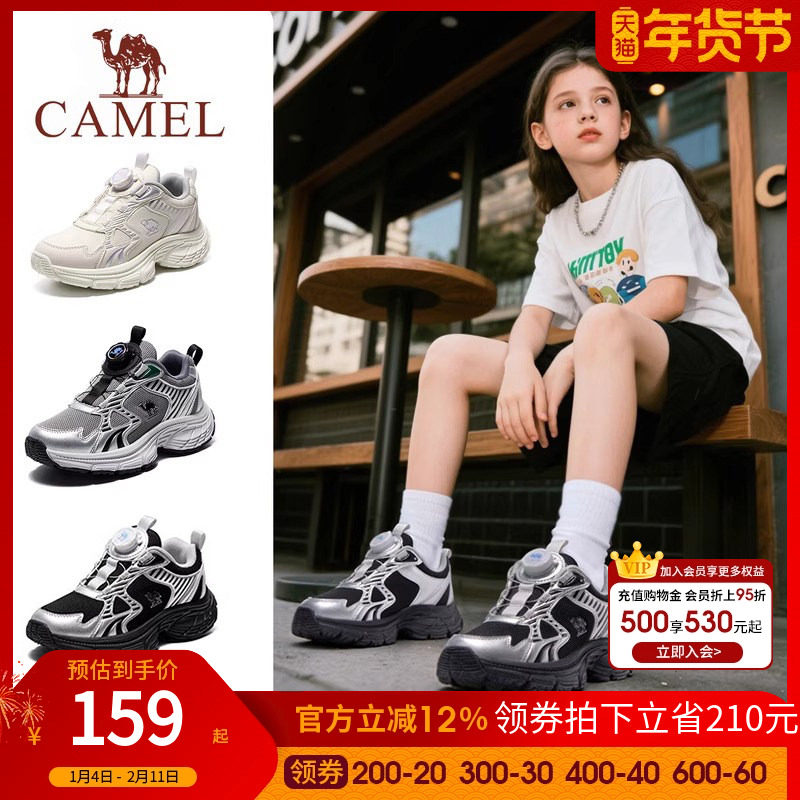 【清仓】骆驼运动鞋男童老爹鞋防滑厚底银色青年休闲透气儿童鞋子