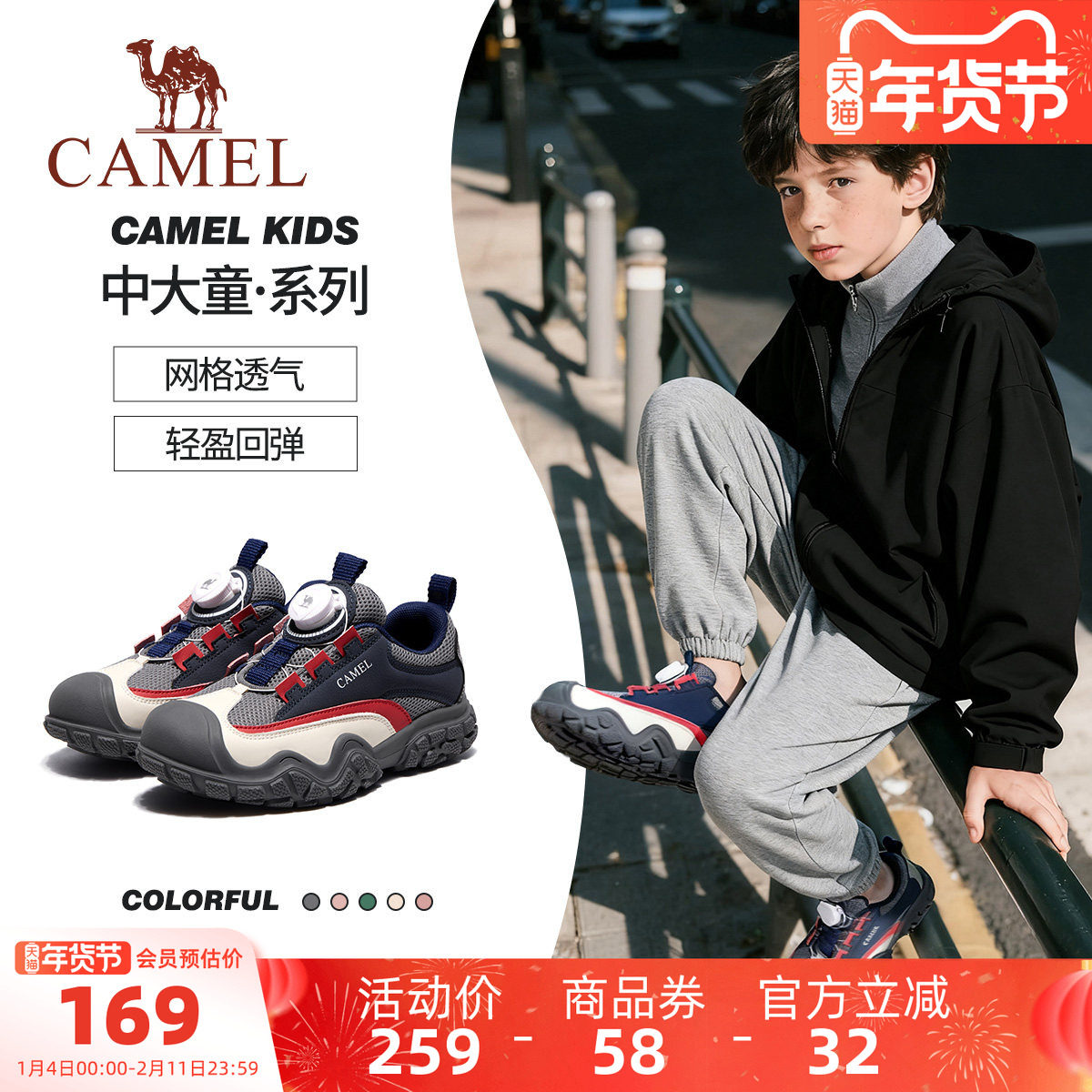 骆驼童鞋男童运动鞋2025新款跑步防滑鞋子中大童女童网面透气鞋
