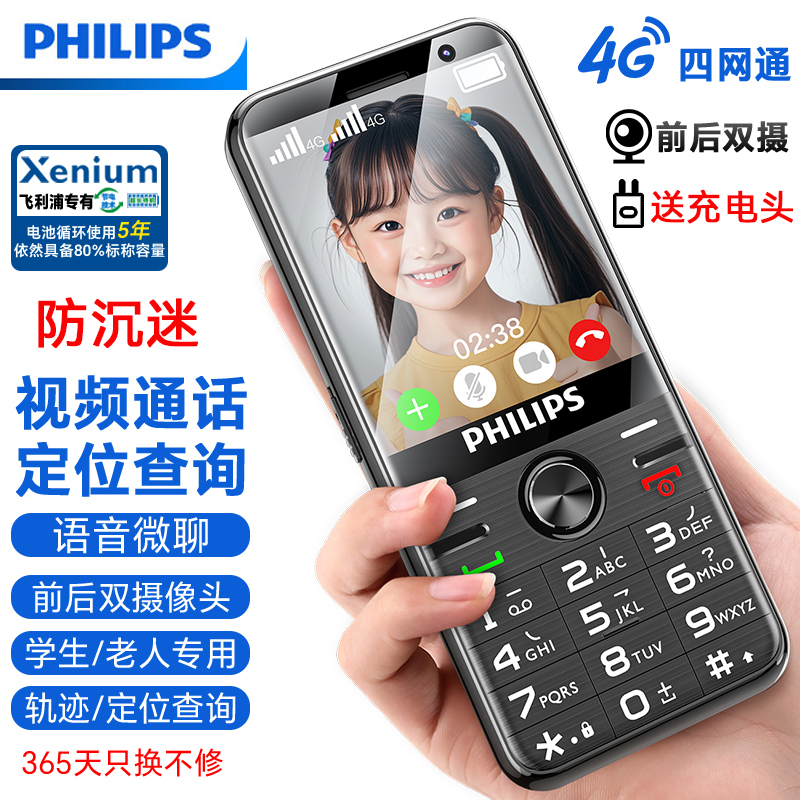 [官方旗舰店]飞利浦2025年新款老年机全网通4G正品超长待机老人机大屏大字大声音男女电信版学生手机按键机