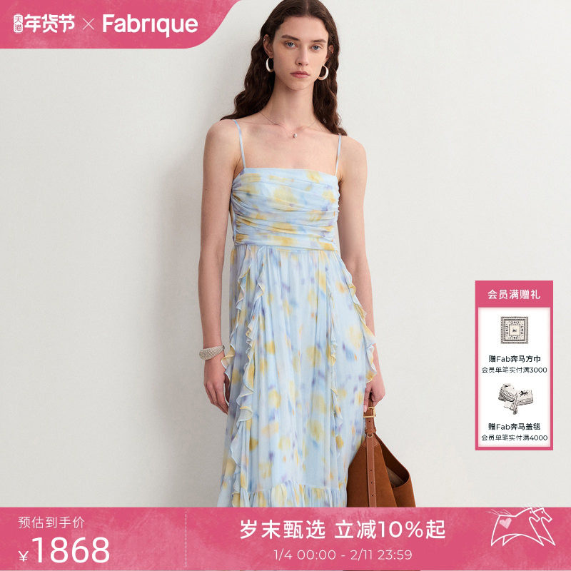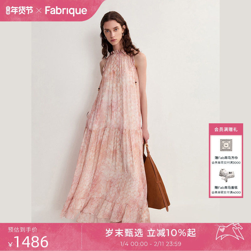 Fabrique橘子海薄纱印花挂脖度假连衣裙2025夏季新品碎花吊带长裙