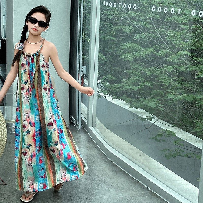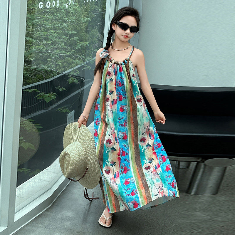 女童连衣裙夏季2025新款儿童碎花吊带长裙女大童波西米亚沙滩裙子