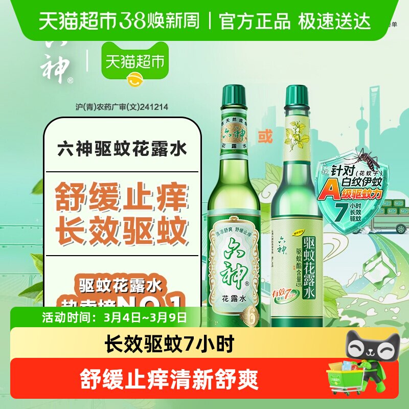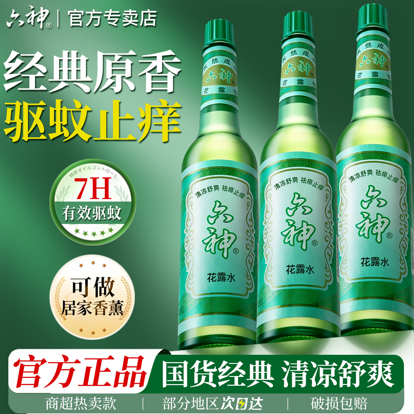 六神经典驱蚊止痒玻瓶花露水防蚊水液蚊不叮清凉薄荷持久留香拖地