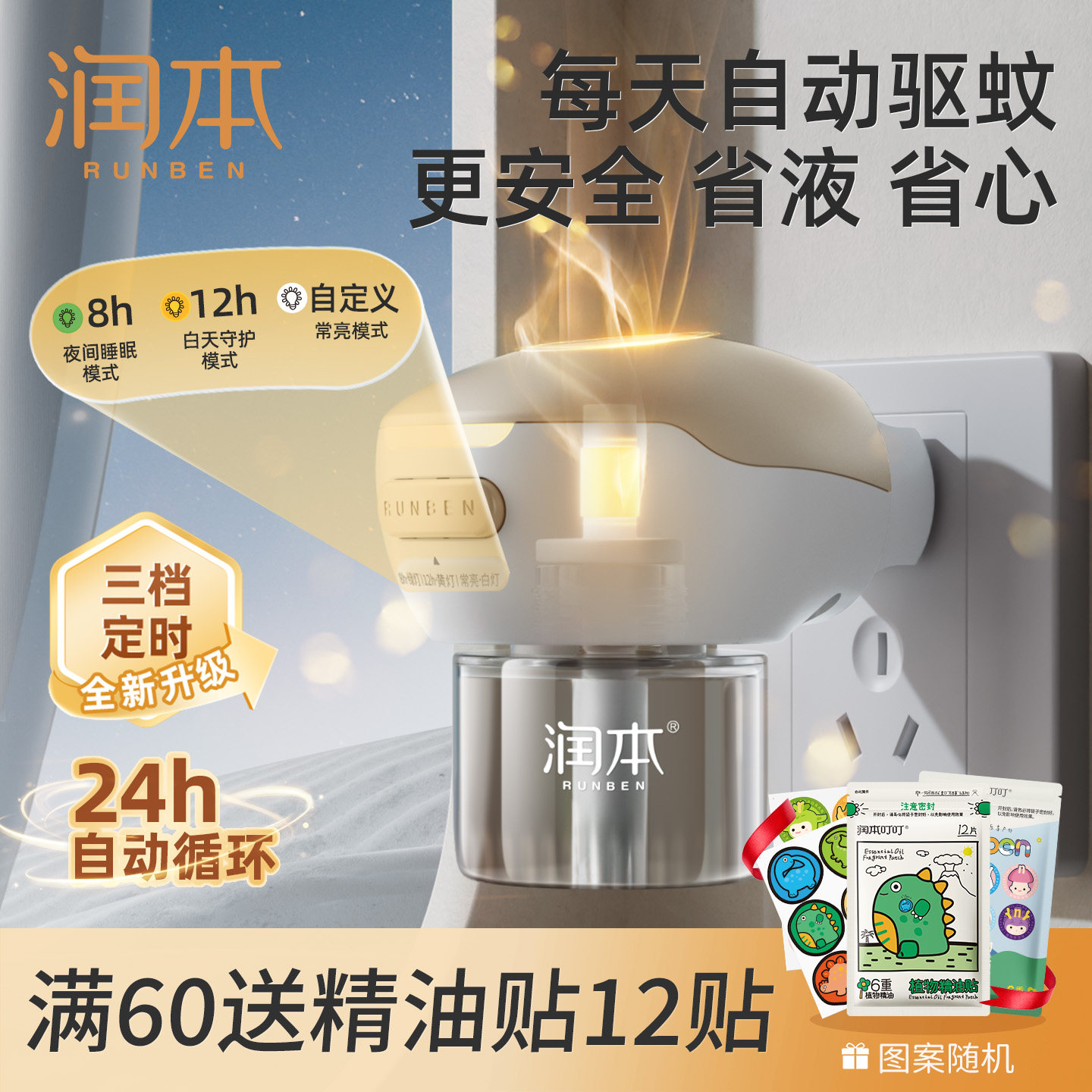 润本定时电热蚊香液家用加热器专用补充液温和驱蚊无烟无灰防蚊液