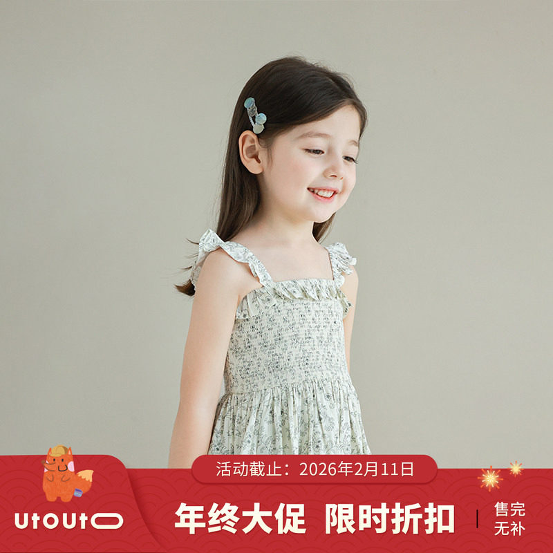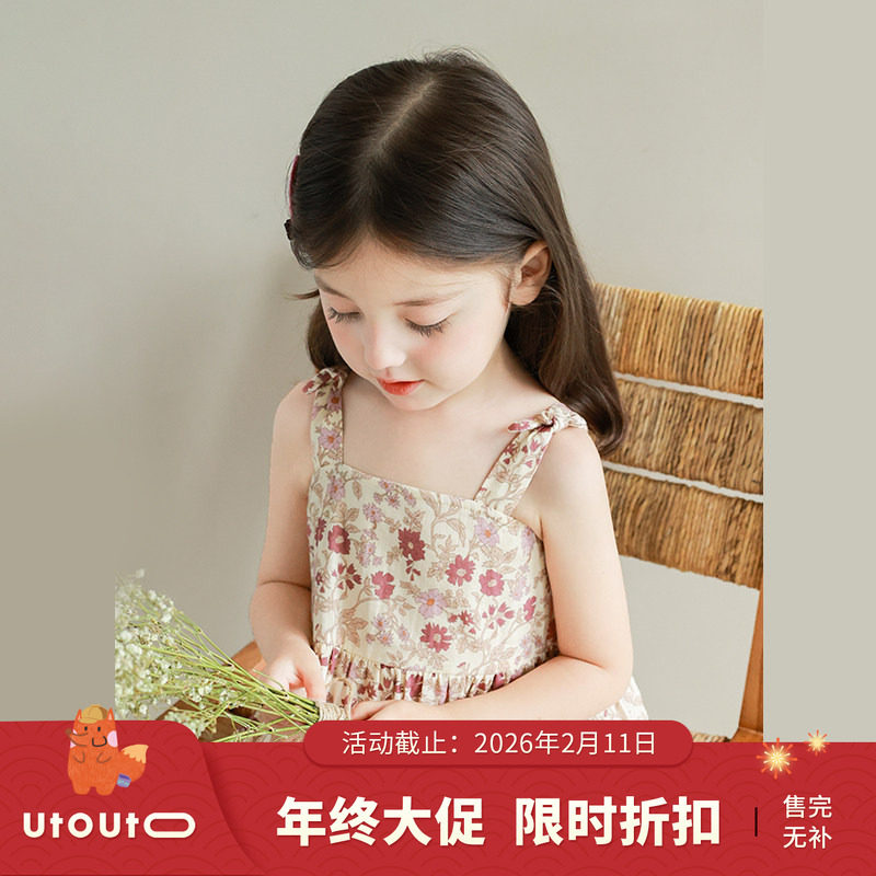 拉夏贝尔女童碎花裙2026夏季新款海边度假风背心连衣裙女孩无袖裙