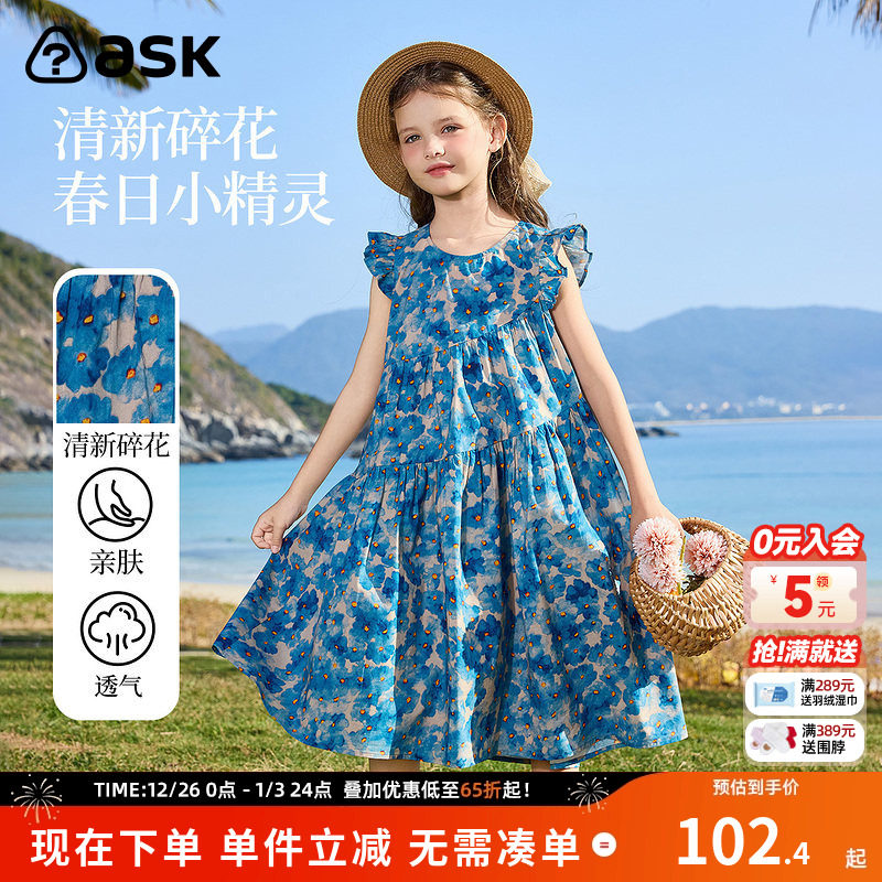 女童连衣裙夏季碎花公主裙沙滩裙2025年新款棉绸背心裙A字裙1-7岁