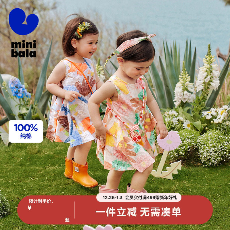 英氏女童短袖连衣裙夏季薄款儿童背心裙夏宝宝碎花裙洋气2025新款