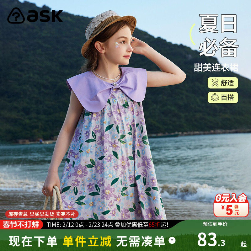 ask 女童夏装碎花连衣裙2026夏季新款中大童百搭洋气公主裙