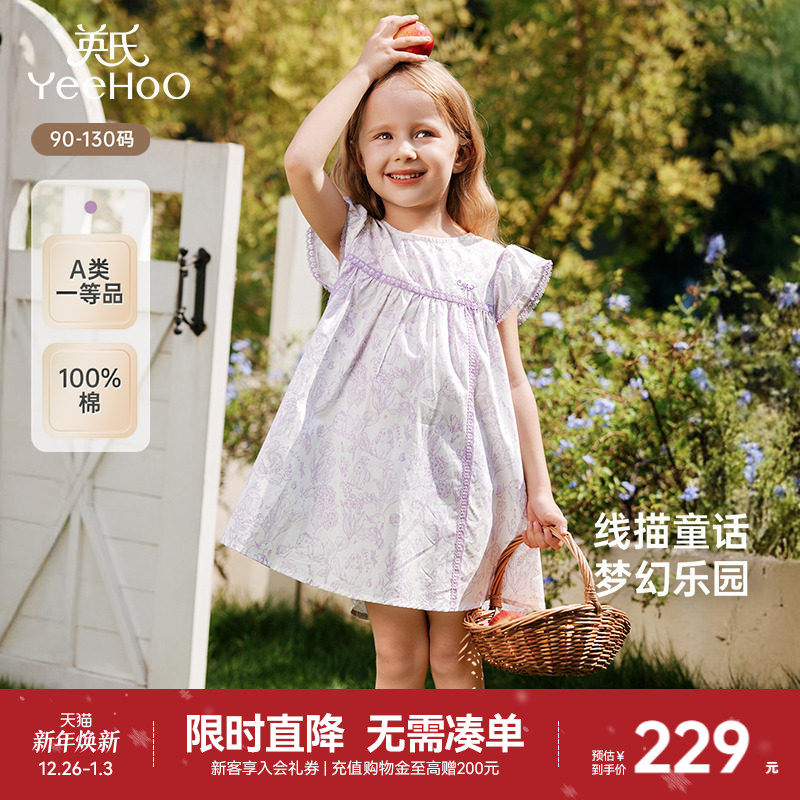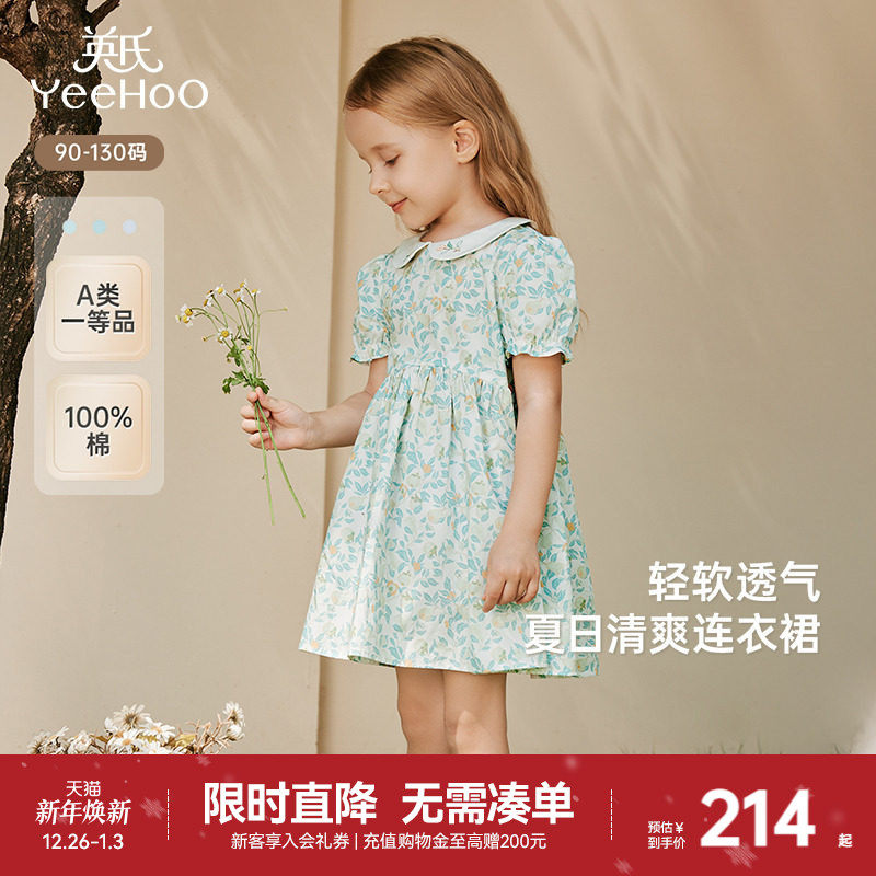 【商场同款】英氏女童连衣裙夏季短袖纯棉2025新款儿童碎花裙子