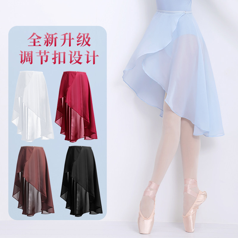 成人舞蹈服女芭蕾舞裙教师裙中长款练功裙系带雪纺纱裙一片式围裙