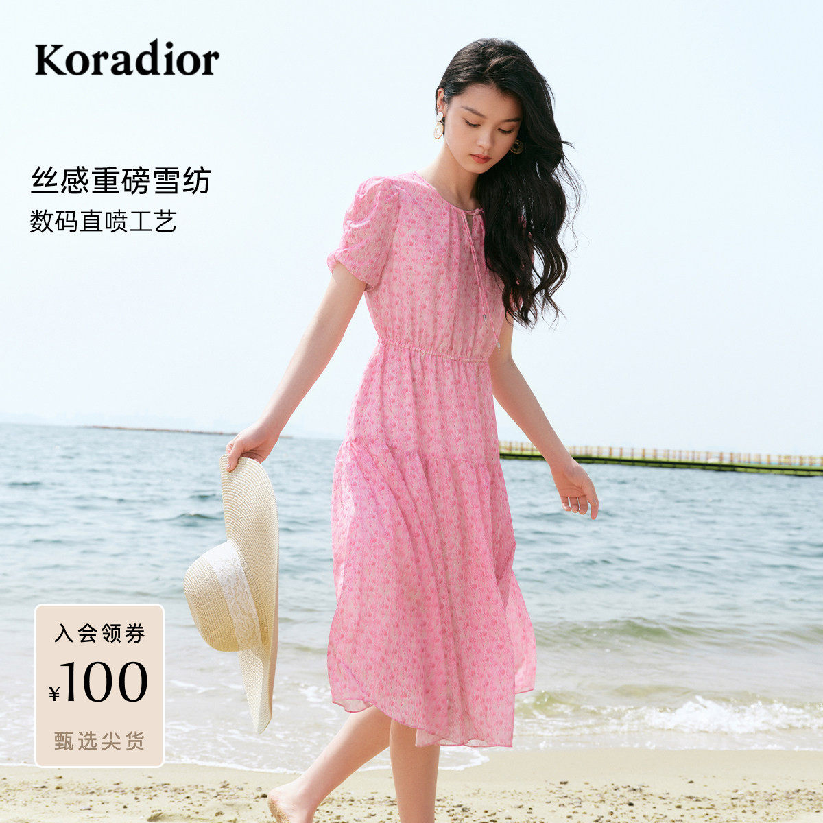 【玫瑰裙】珂莱蒂尔2025年夏新款碎花雪纺连衣裙女优雅气质中长裙