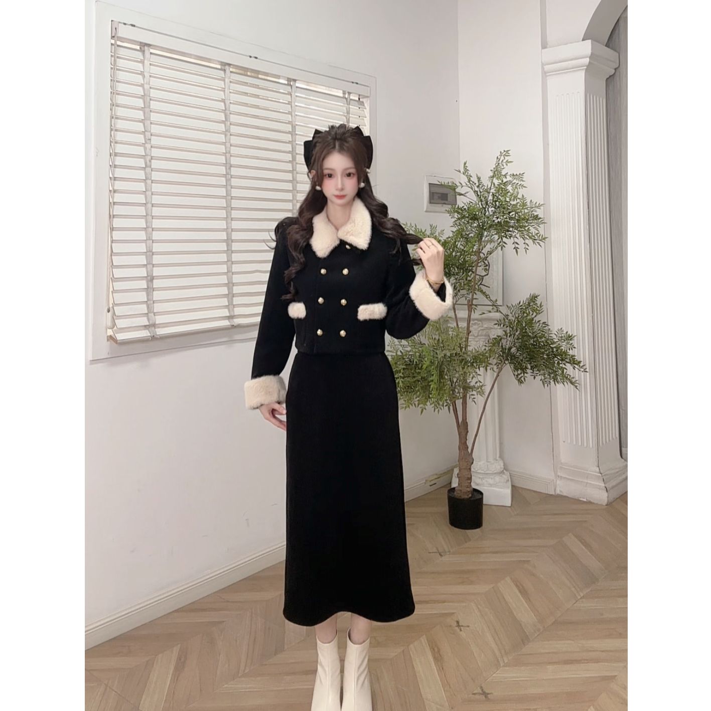 - 毛呢两件套女装