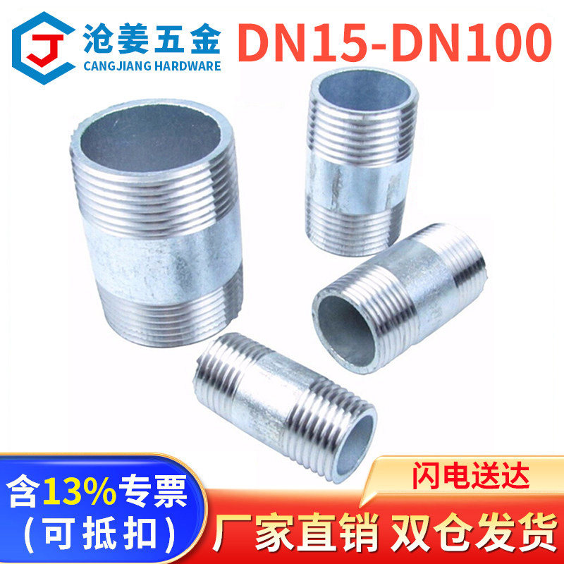 外丝接头镀锌铁管水管套丝双头丝管4分6分一寸DN1520253240螺纹