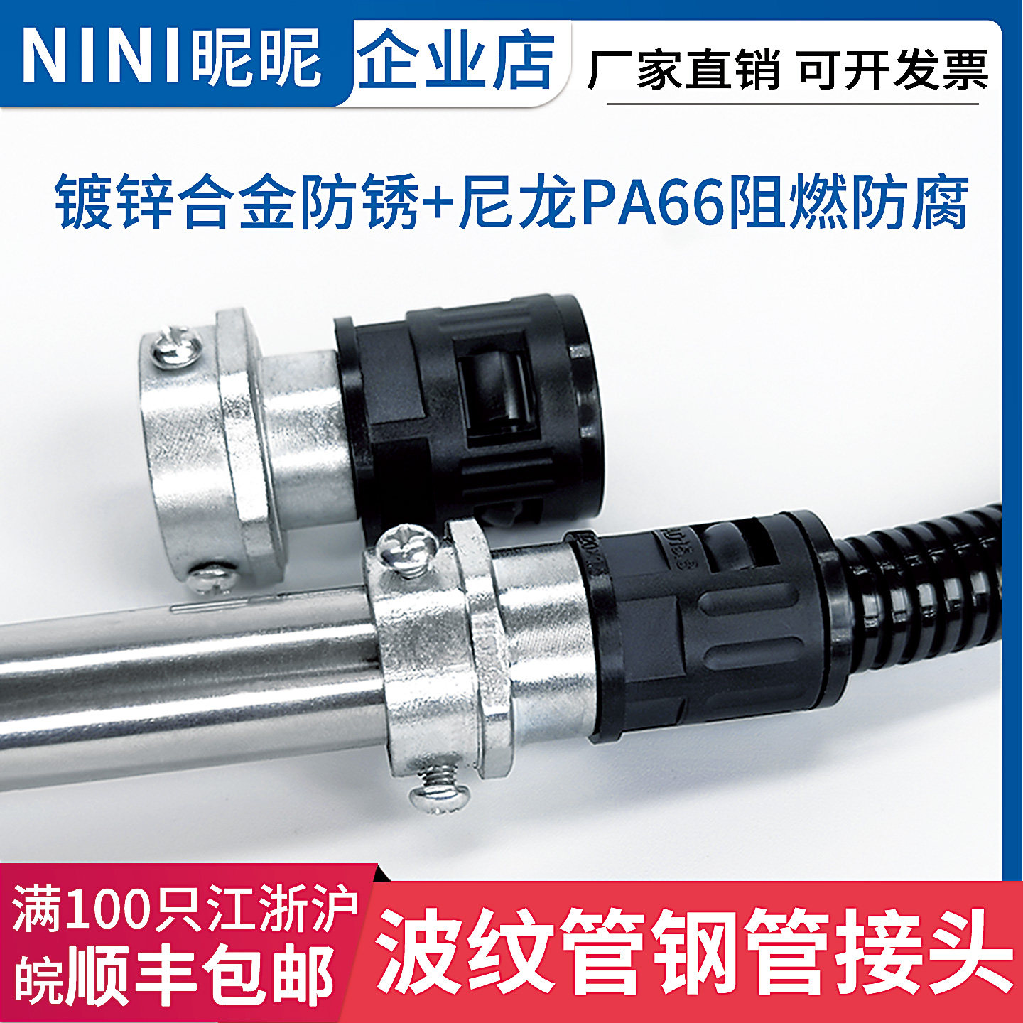 正涛PA66尼龙波纹管对接镀锌管接头IP68防水加厚阻燃V1级软管对接