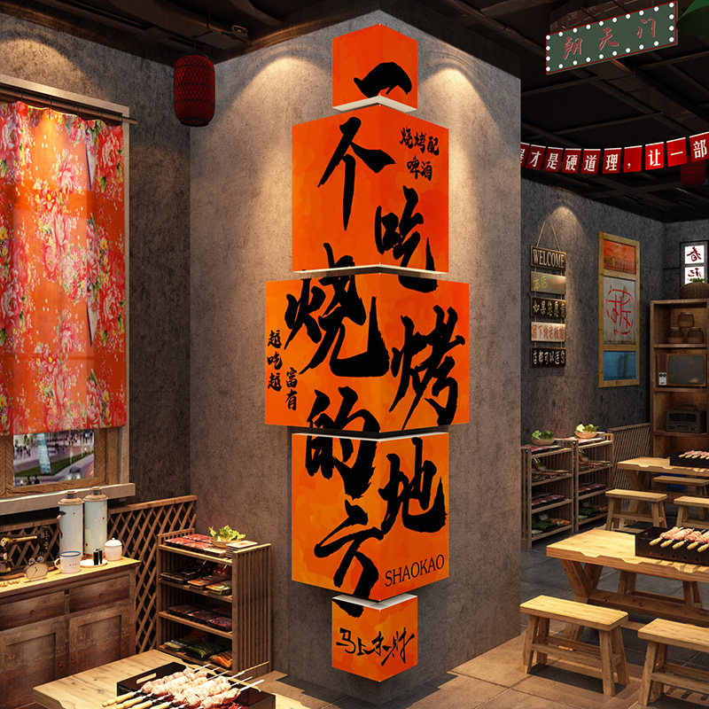 网红烧烤肉店墙面装饰画创意打卡餐饮工业风酒吧氛围布置形象贴纸