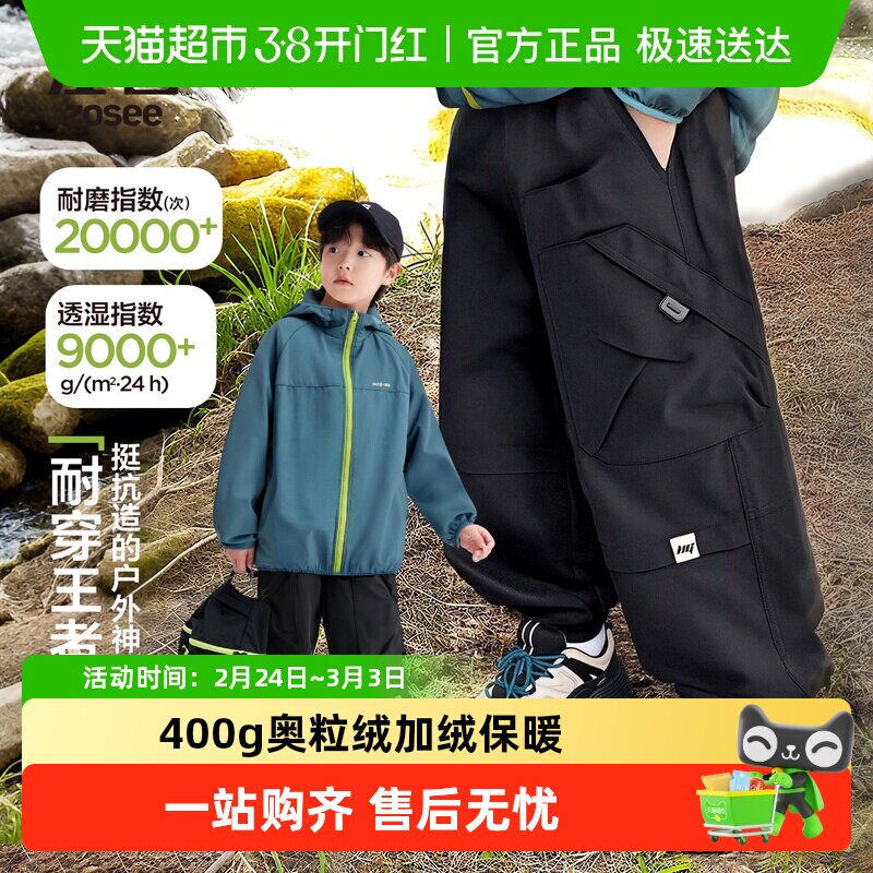 左西童装男童裤子春装儿童工装裤春秋款2026新款中大童冲锋裤长裤