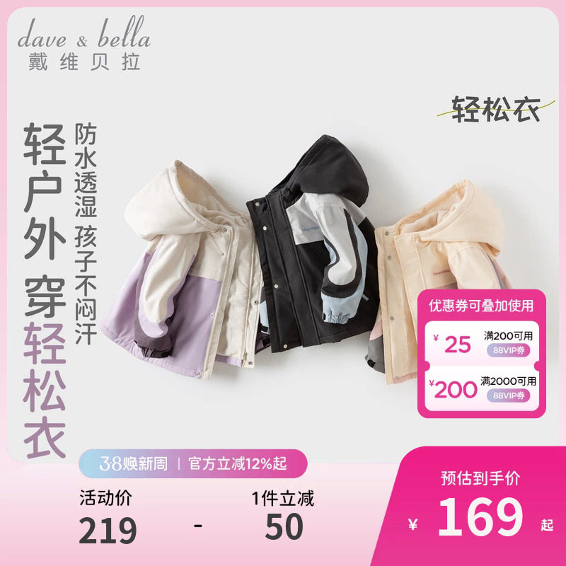 戴维贝拉童装儿童外套男童防水风衣春装户外服女童摇粒绒衣服大童