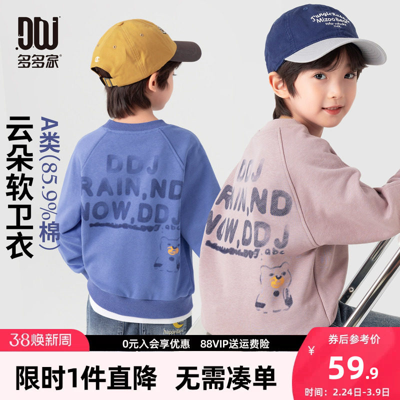 多多家男童卫衣2026新款春秋儿童中大童春装水墨感印花洋气上衣潮