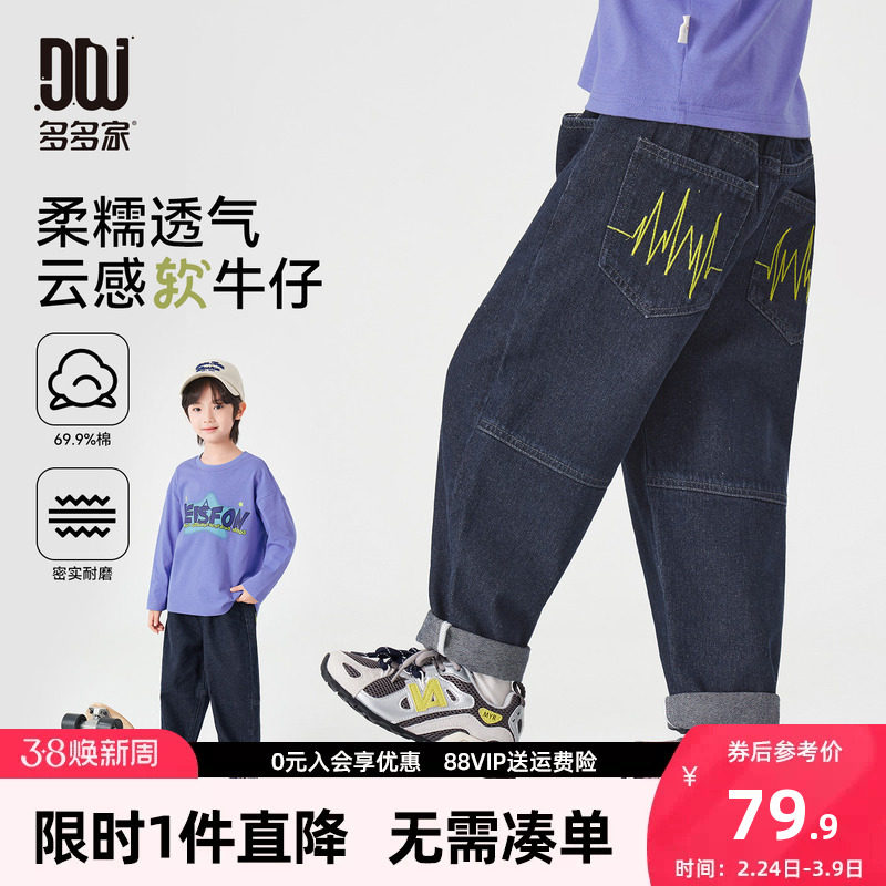 多多家男童牛仔裤2026春秋新款儿童中大童春装撞色刺绣休闲裤子潮