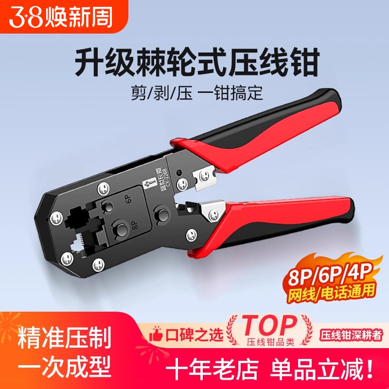 多功能网线钳子超五类六类网络宽带水晶头压线钳子专业级原装正品家用8P6P电话水晶头工程夹线钳