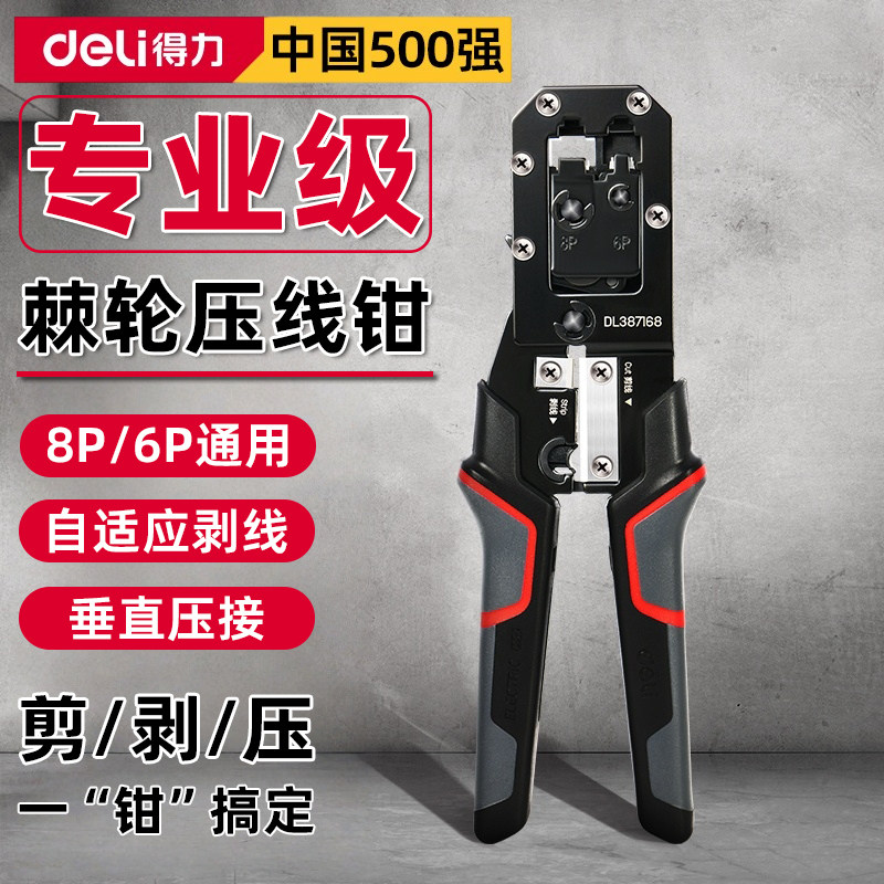 得力网线钳子专业级水晶头压线钳家用套装六类超五类网络工具刀片