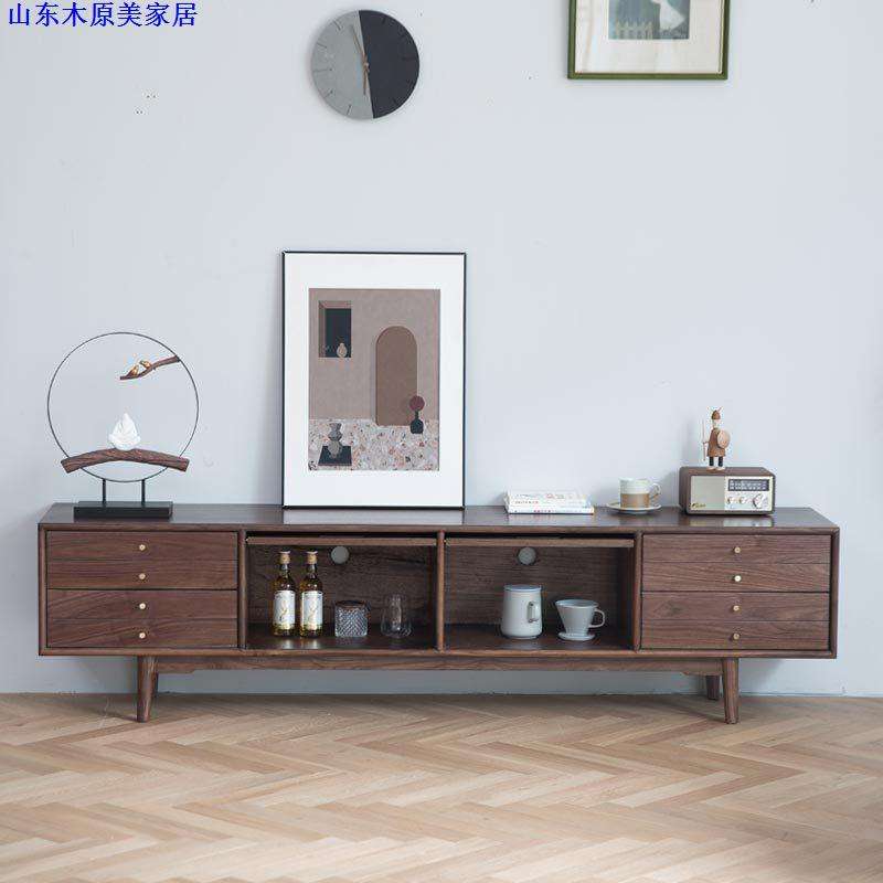 全实木黑胡桃木电视柜白橡木樱桃木原木简约现代客厅地柜收纳轻奢