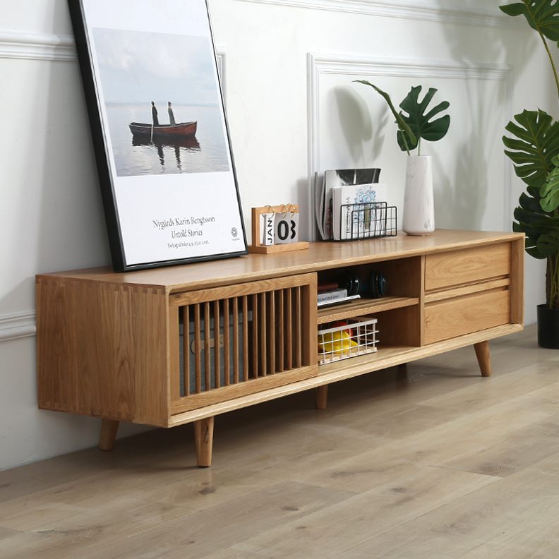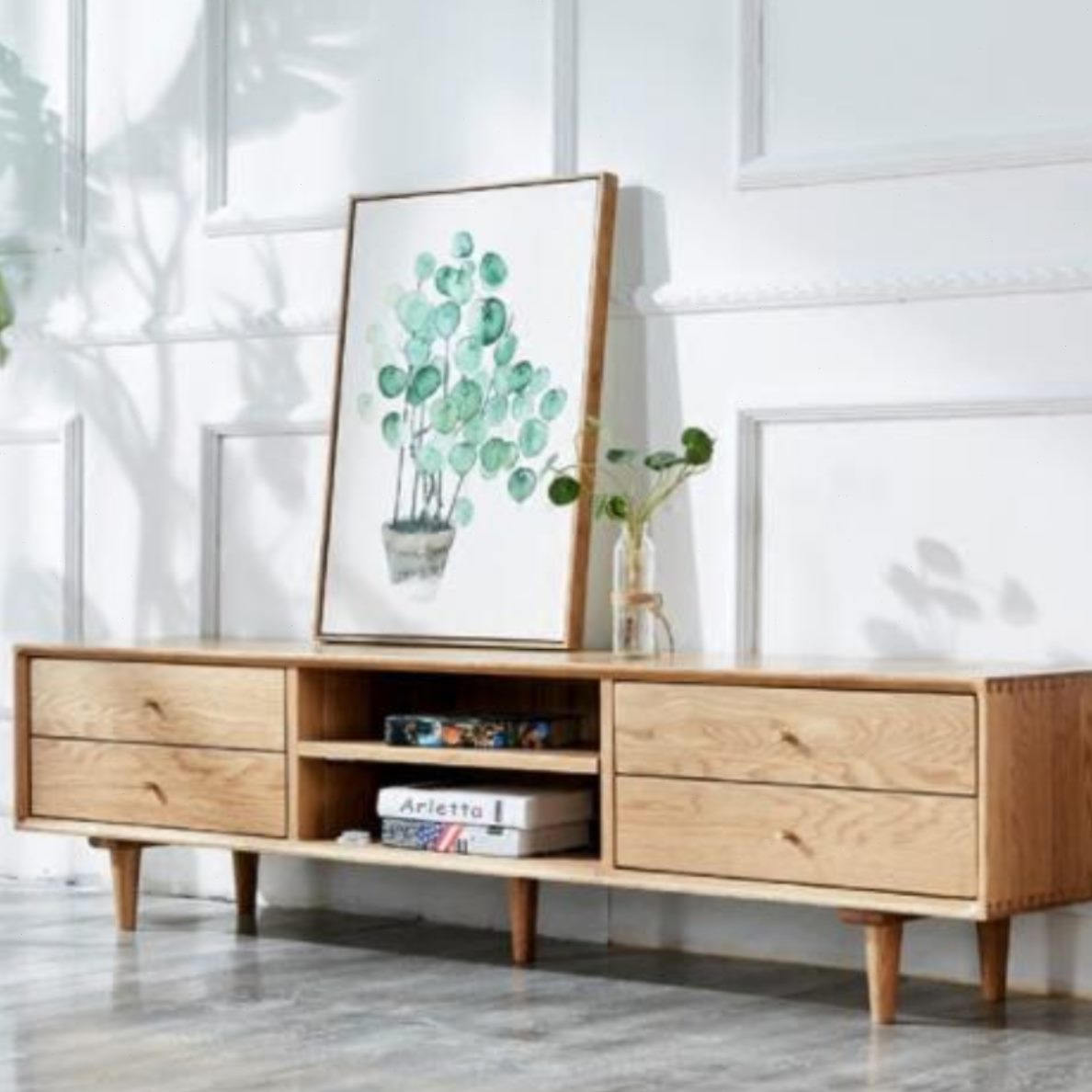 北欧实木电视柜 简约轻奢客厅白橡木电视柜组合 现代原木视听柜