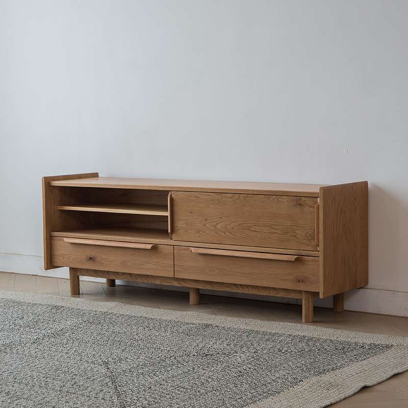 朴室侘寂风极简北欧日式japandi客厅白橡木实木原木电视柜地柜