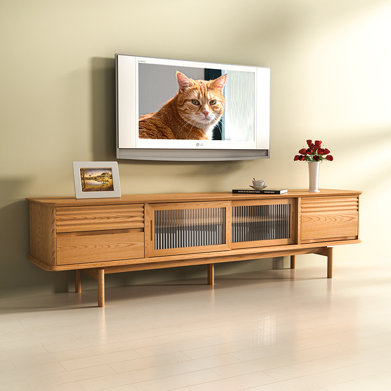 实木白橡木电视柜北欧樱桃木客厅矮柜1.5 1.8 2.1 2.4 白橡木地柜