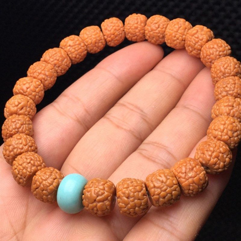 尼泊尔小原籽天然金刚菩提手串爆肉龙鳞纹蜜蜡松石男女士文玩手链