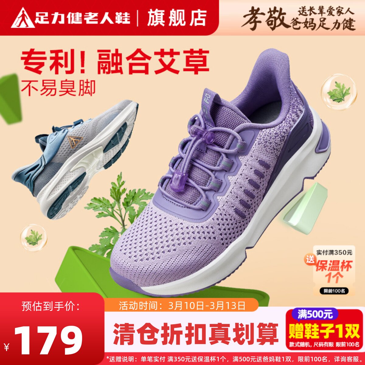 足力健老人鞋旗舰店正品休闲运动女鞋春防臭艾草健步中老年妈妈鞋