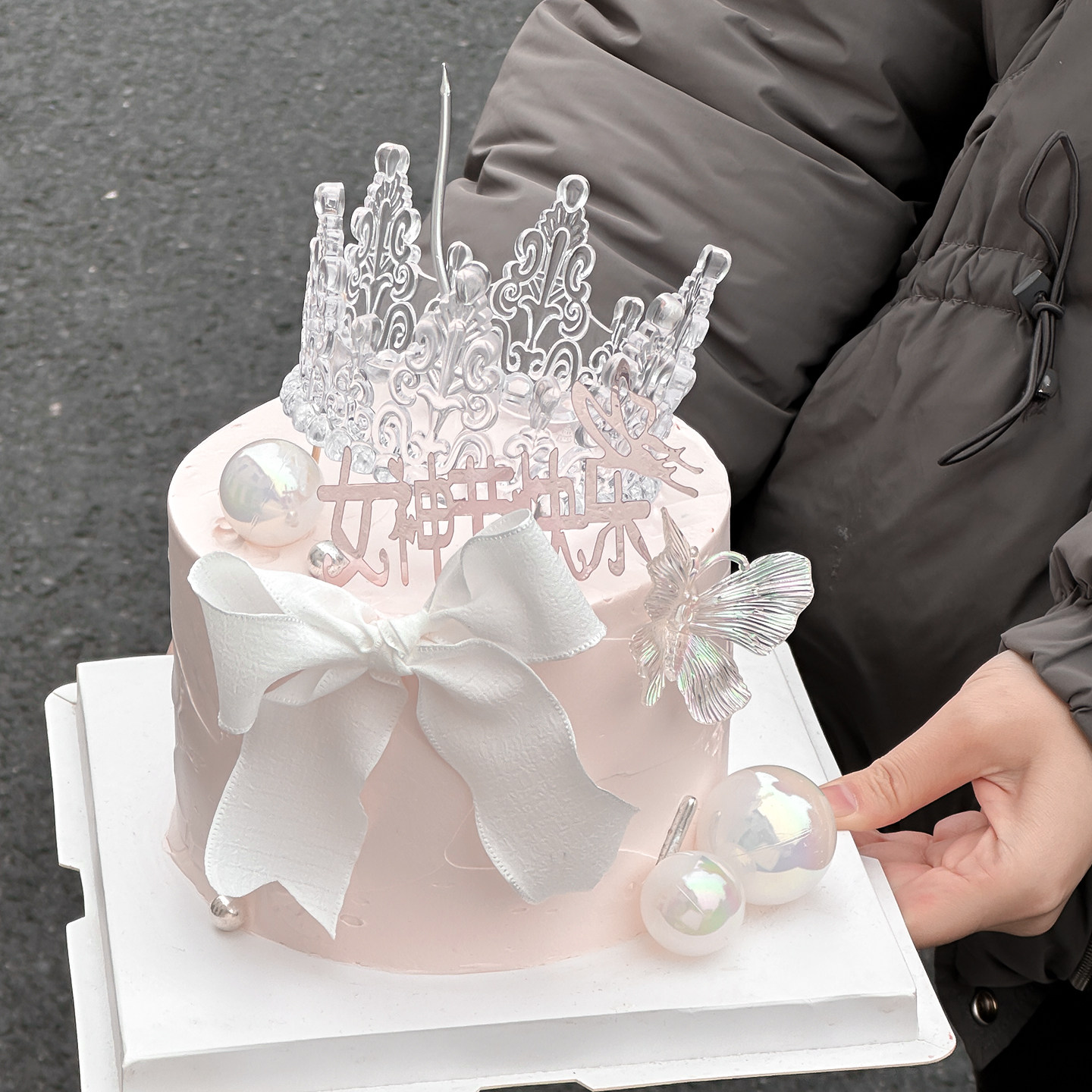 38女神节快乐亚克力蛋糕装饰插牌透明水晶皇冠蝴蝶妈妈节日装扮