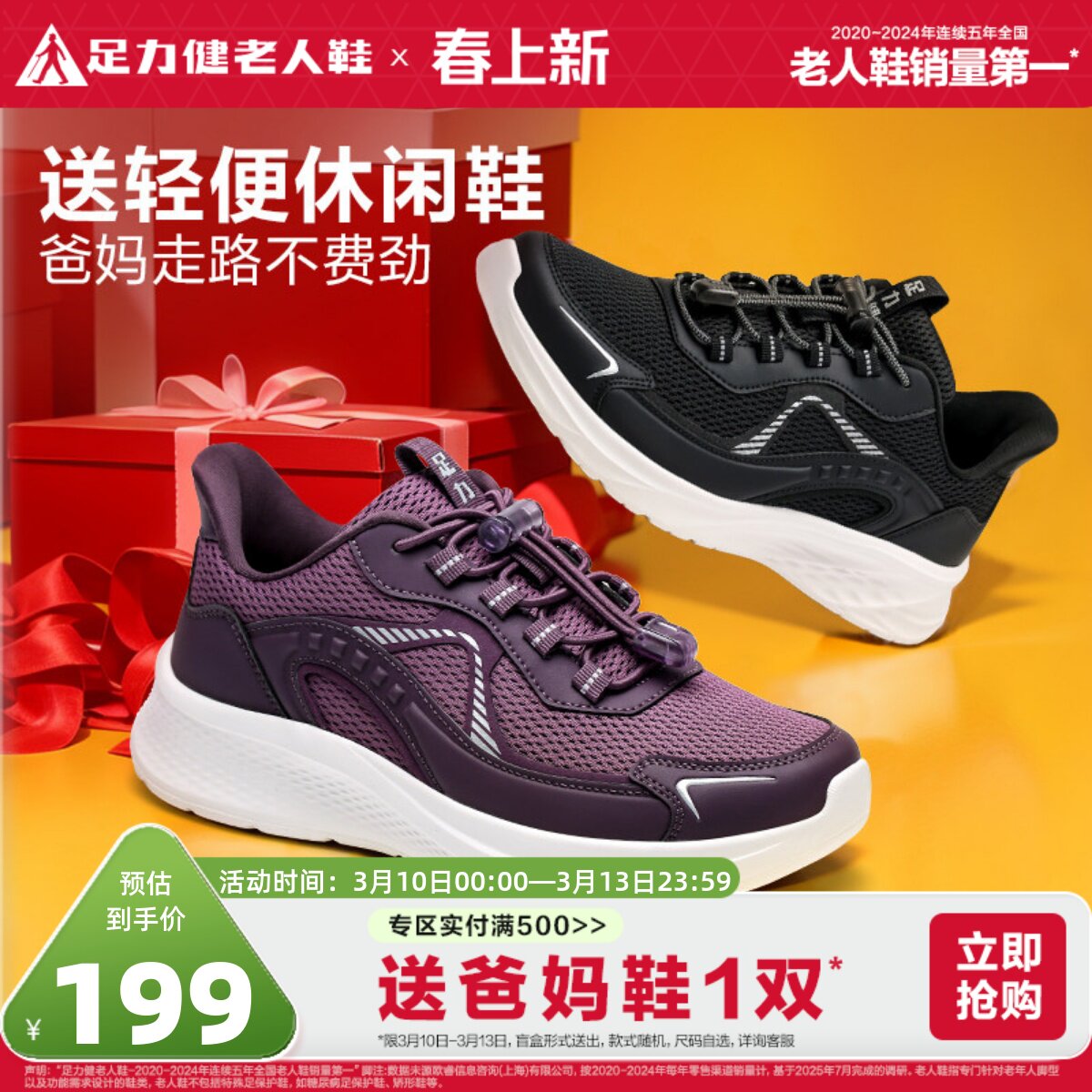 足力健老人鞋官方旗舰店正品妈妈鞋春季轻便休闲运动软底健步鞋女
