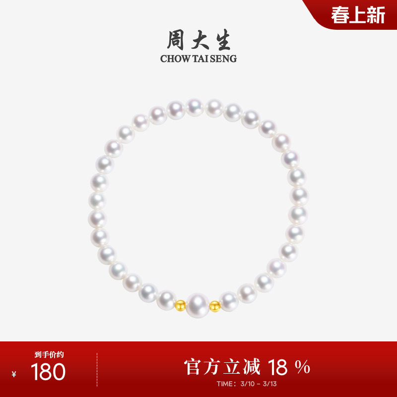 周大生淡水珍珠手链18K金弹力绳简约百搭手串手饰生日礼物送妈妈
