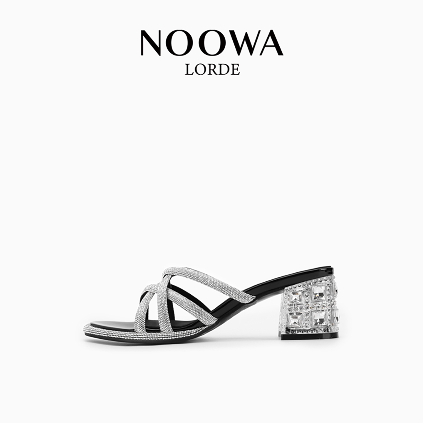 NOOWA小众水钻拖鞋女2025款时尚仙女风小个子增高法式粗跟一字拖