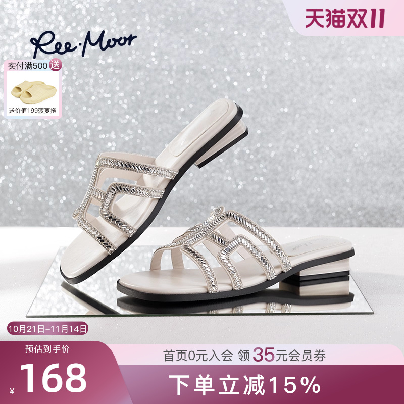 REEMOOR睿慕2025夏季新款法式水钻拖鞋女外穿平底一字凉拖高级感
