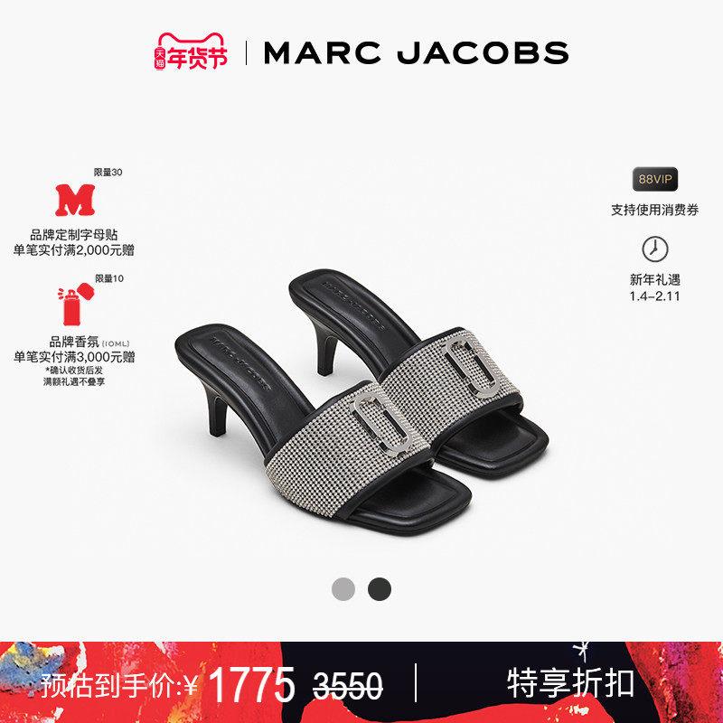 【新年特惠】MARC JACOBS/莫杰 MJ SANDAL 羊皮水钻拖鞋高跟凉鞋