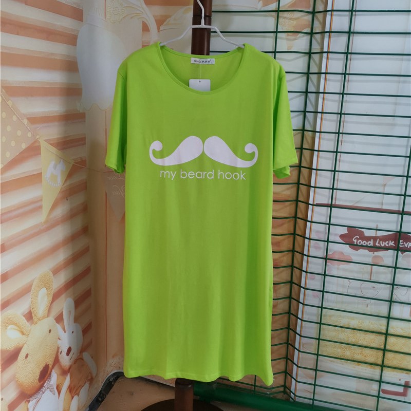 帝日斯诺全棉睡裙减龄卡通印花圆领短袖宽松中长居家休闲慵懒T恤