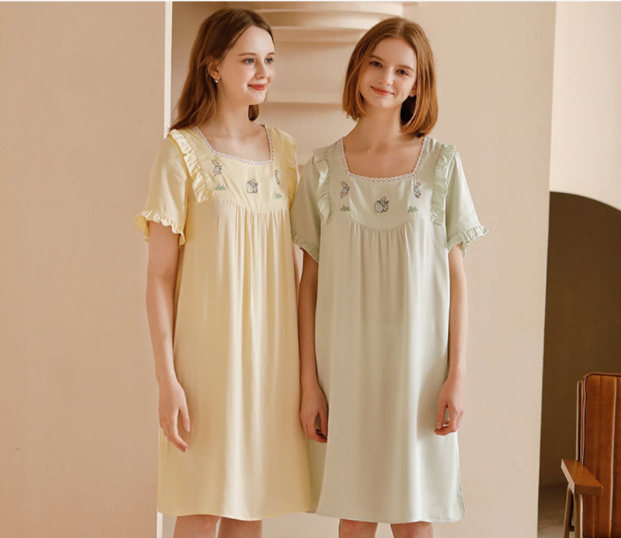 爱帝纯棉睡裙女士睡衣家居服全棉睡裙女夏季可爱外穿薄款短袖新款
