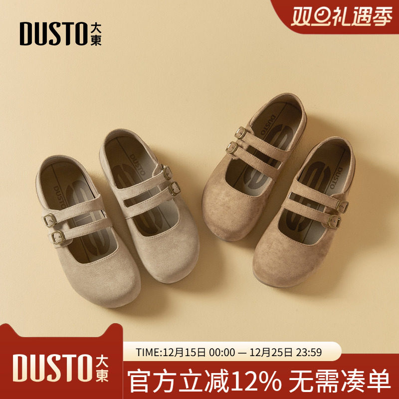 大东玛丽珍鞋女鞋2026春季新款复古平底中跟两穿圆头舒适浅口单鞋