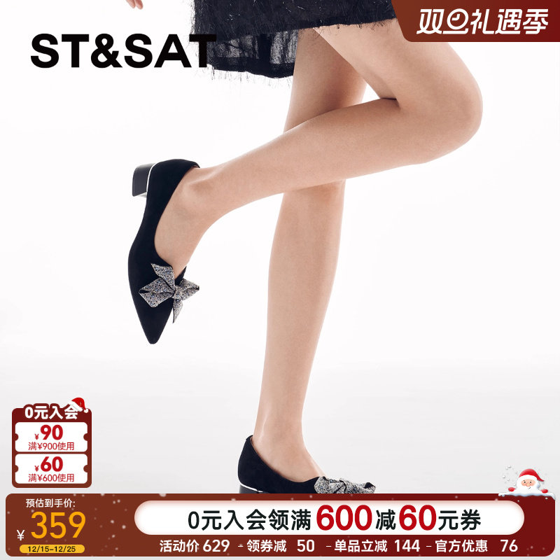 星期六浅口单鞋春季新款优雅尖头中跟通勤黑色单鞋SSC1111141