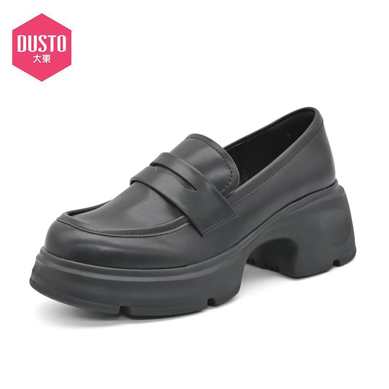 大东乐福鞋女鞋2025春季新款时尚休闲圆头粗跟中跟套脚单鞋小皮鞋