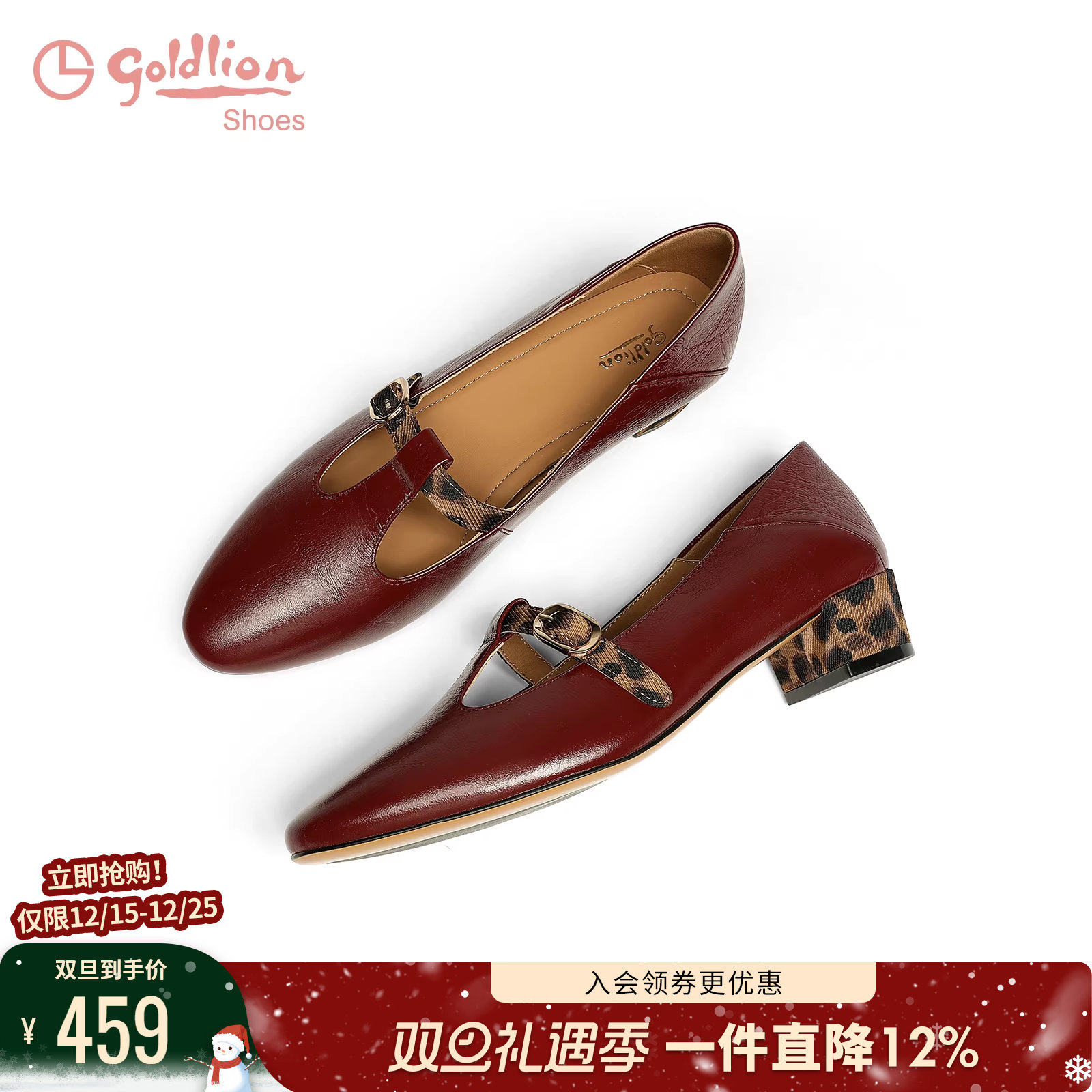 金利来法式玛丽珍鞋女中跟2025春季新款女鞋复古真皮浅口粗跟单鞋