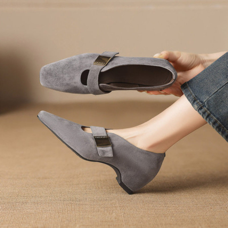 大东玛丽珍鞋女鞋2026春季新款粗跟中跟套脚方头舒适单鞋C0147