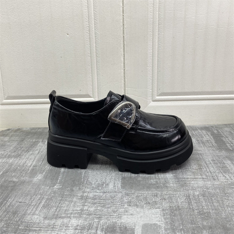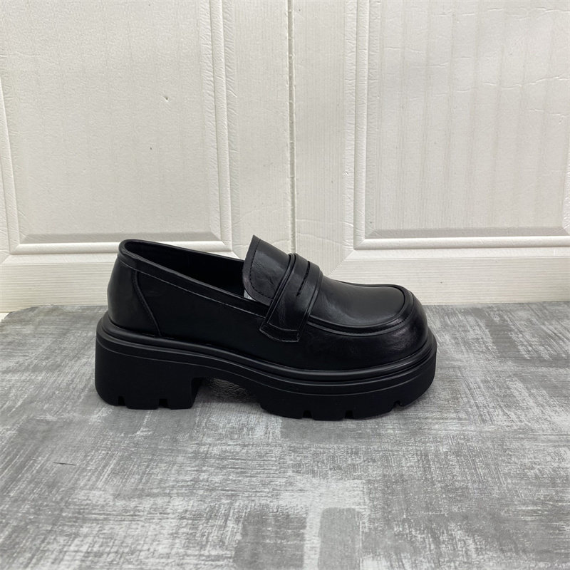 2026春季新款撤柜断码新款粗跟中跟圆头套脚黑色乐福鞋英伦女单鞋