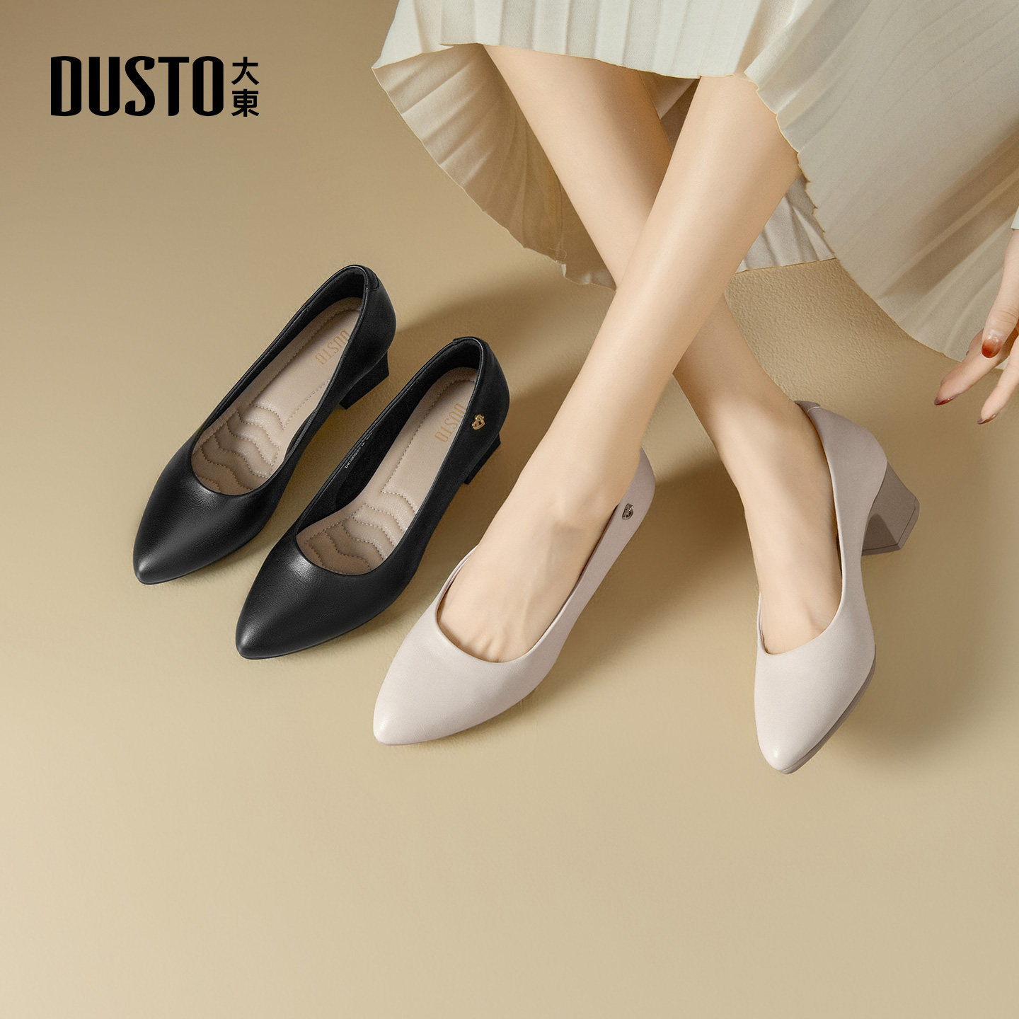 大东通勤鞋女鞋2026春季新款粗跟中跟套脚尖头光板浅口单鞋C0067