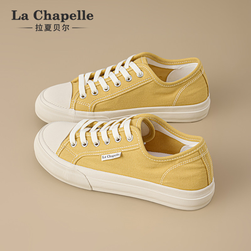 拉夏贝尔黄色帆布鞋女2026新款春夏季学生百搭透气薄款配裙子板鞋